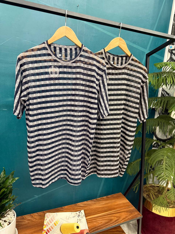تی شرت راه راه توری آستین کوتاه تمام نخ درجه یک